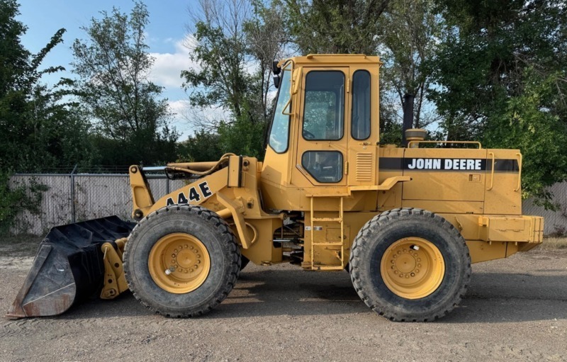 1994 John Deere 444E front end wheel loader, JRB quick attach, factory auxiliary 3 rd. valve hydraulics, New rubber, clean tight municipal machine, 8500 hours, new grab tech grapple fork on hand and available,